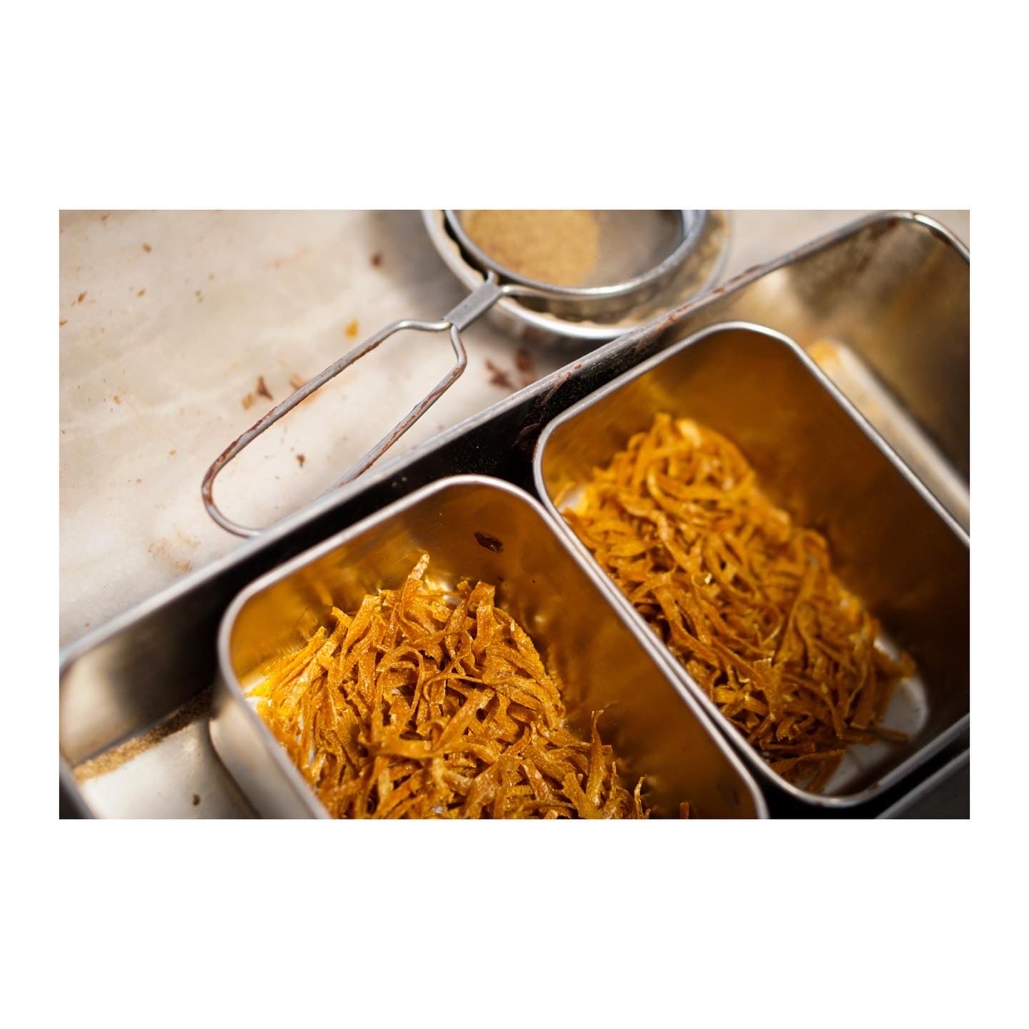 Piper Longum aka Pippali, the original heat giving spice of south Asia, is an aromatic treasure since forgotten in contemporary cuisine. We’ve blended this fragrant spice with Gondhoraj limes and candied orange for a citrus pepper explosion!