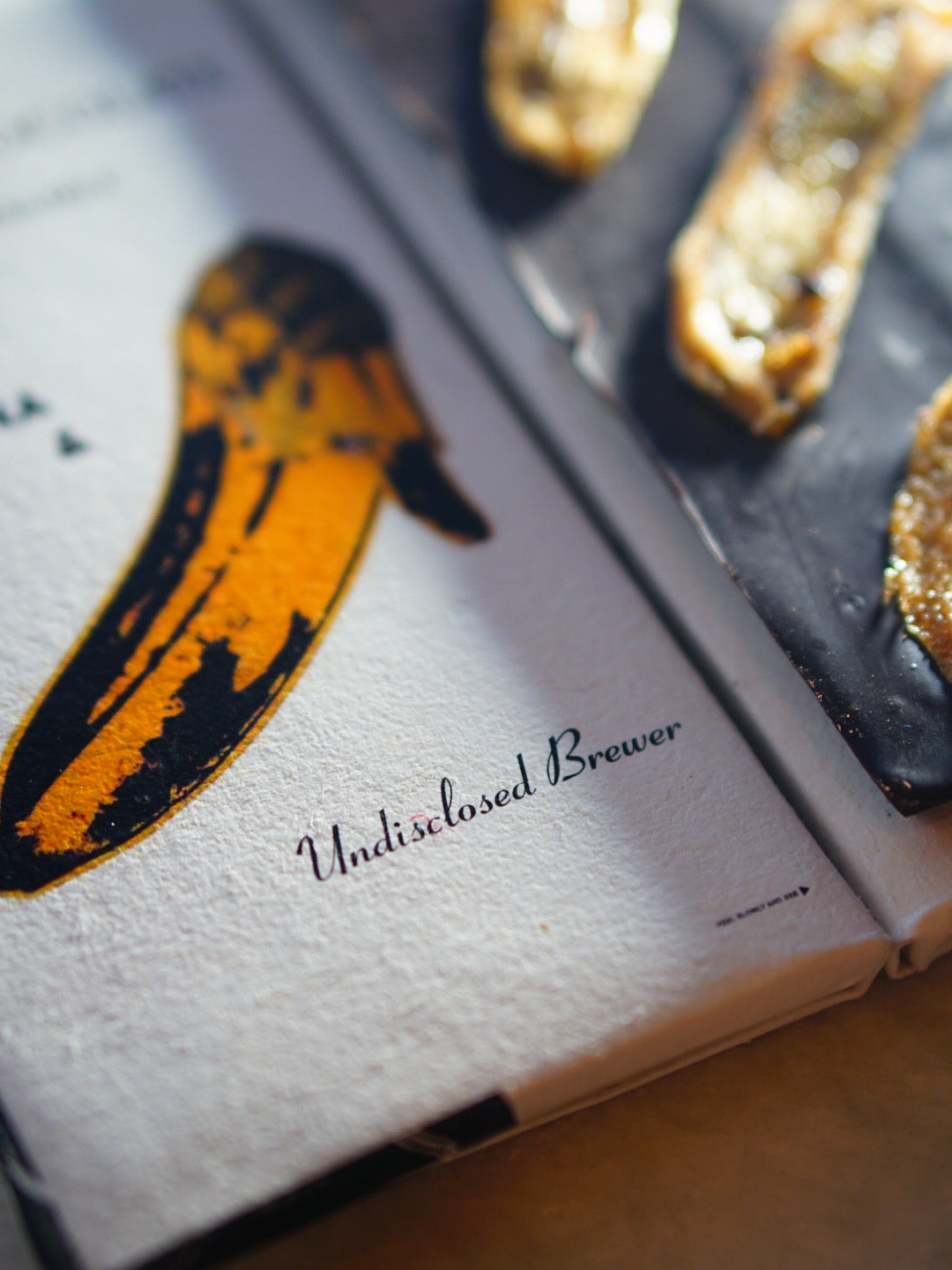 Entitled "Undisclosed Brewer" this limited edition craft chocolate bar explores the concept of "collaborations" as manifest in the modern era of influencer-lead products within the attention economy.